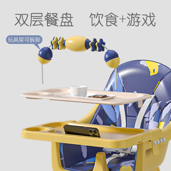 Baby Highchair Children's Multifunctional Adjustable High Chair with Tray Home Safety Anti Drop Portable Seat Baby Dining Chair Large Space Extendable School Chair [Exclusive Version] Graffiti Pink Purple Double Dining Plate+Universal Wheel+Toy Rack+...