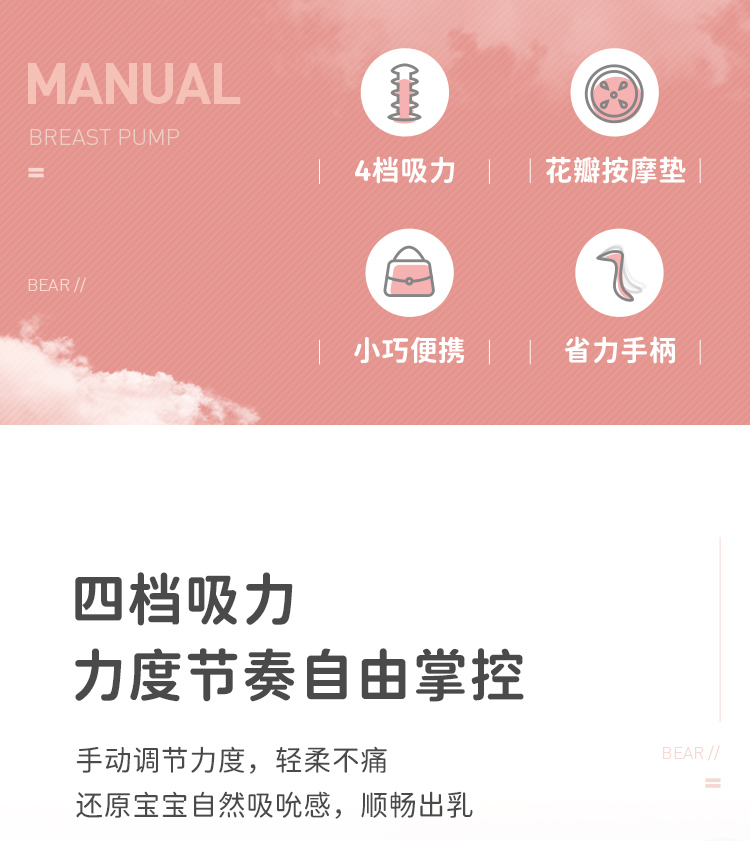 Bear Breast Pump Manual 4-speed Breast Collector Portable Breast Pump Wearable MW-C0020