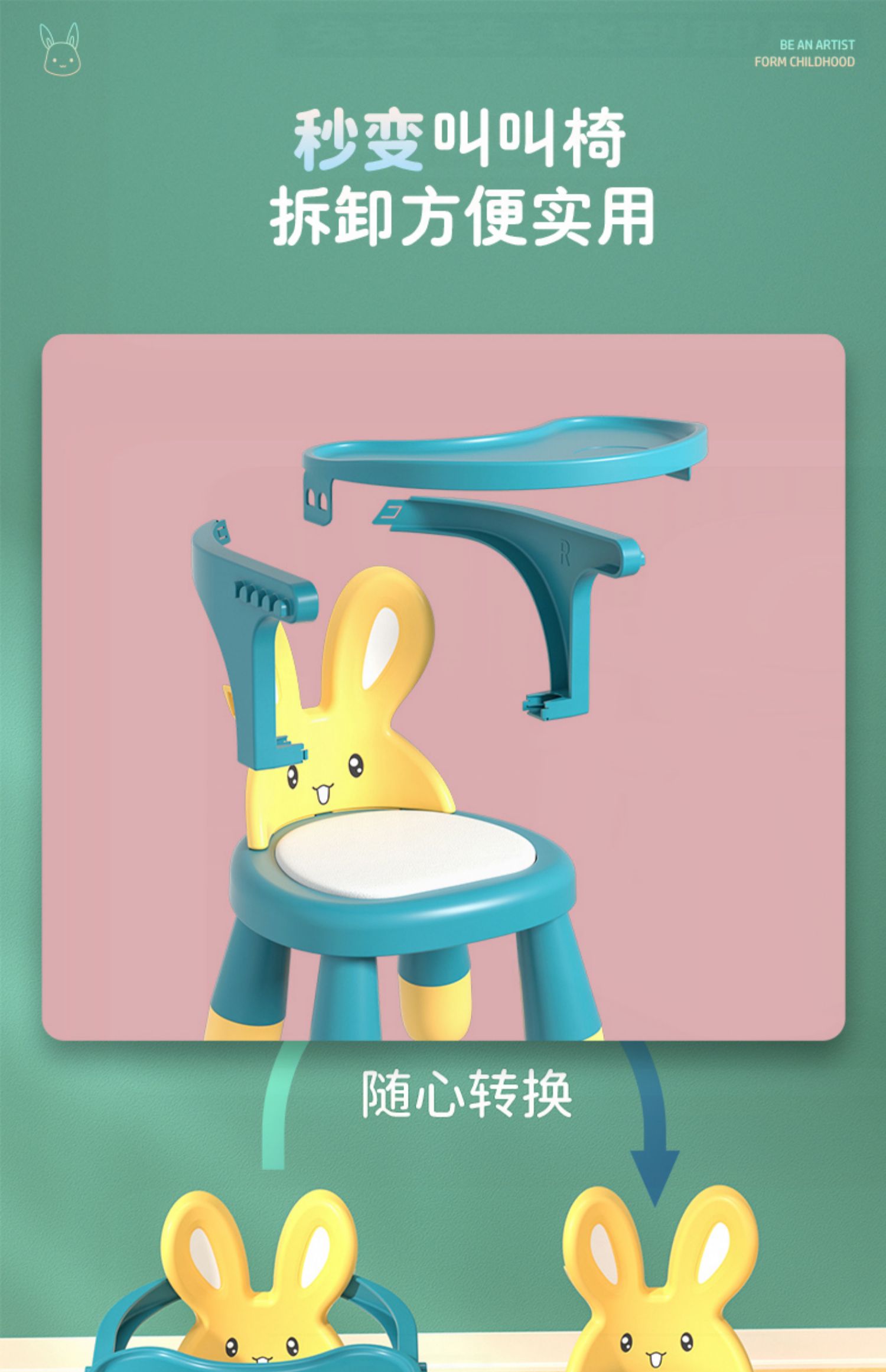 Children's High Chair with Tray Baby Stool Backrest Chair Baby Baby High Chair Chair Home Children's Bench One Year Soft Seat+Call Chair - Blue - Height Adjustable 【 Image Price Brand Quotation 】-
