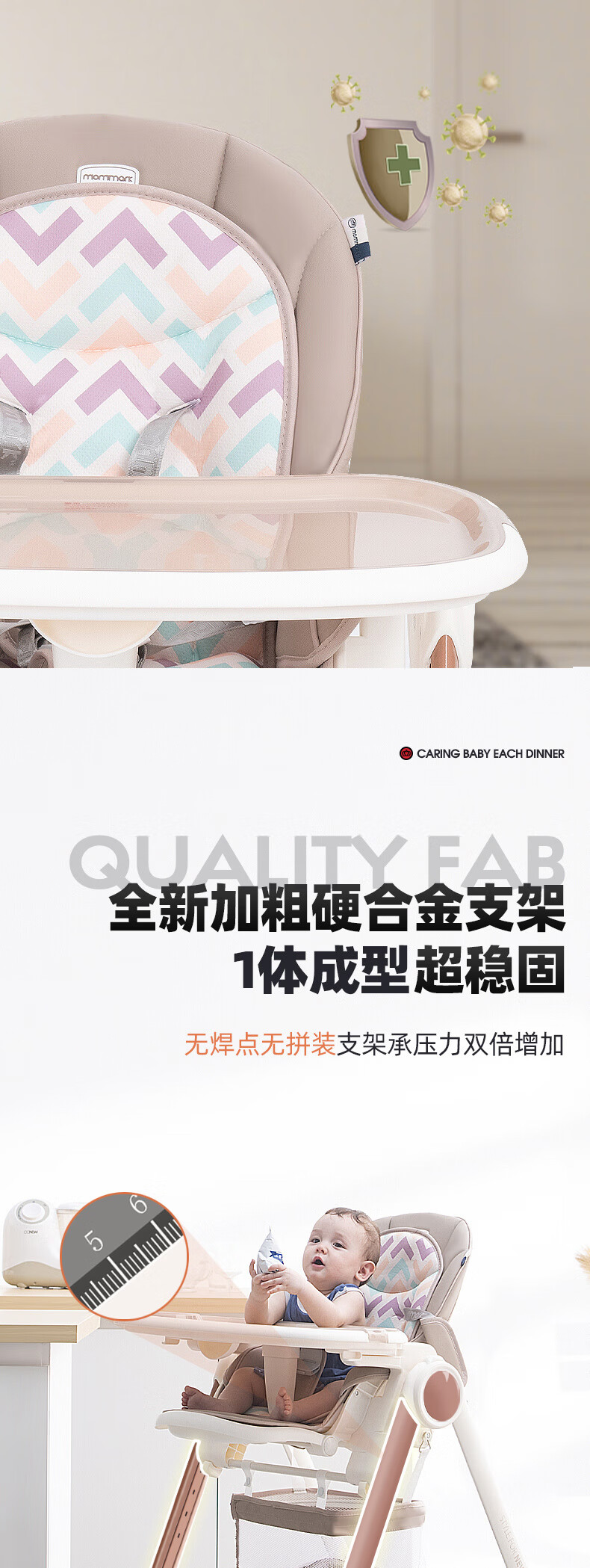 Mommark Baby Highchair Multifunctional Children's Adjustable Baby Highchair Wide Stool Carrying Adjustable Portable Baby Learning Chair [Refreshing Style] Lapska+Brand Cool Cushion