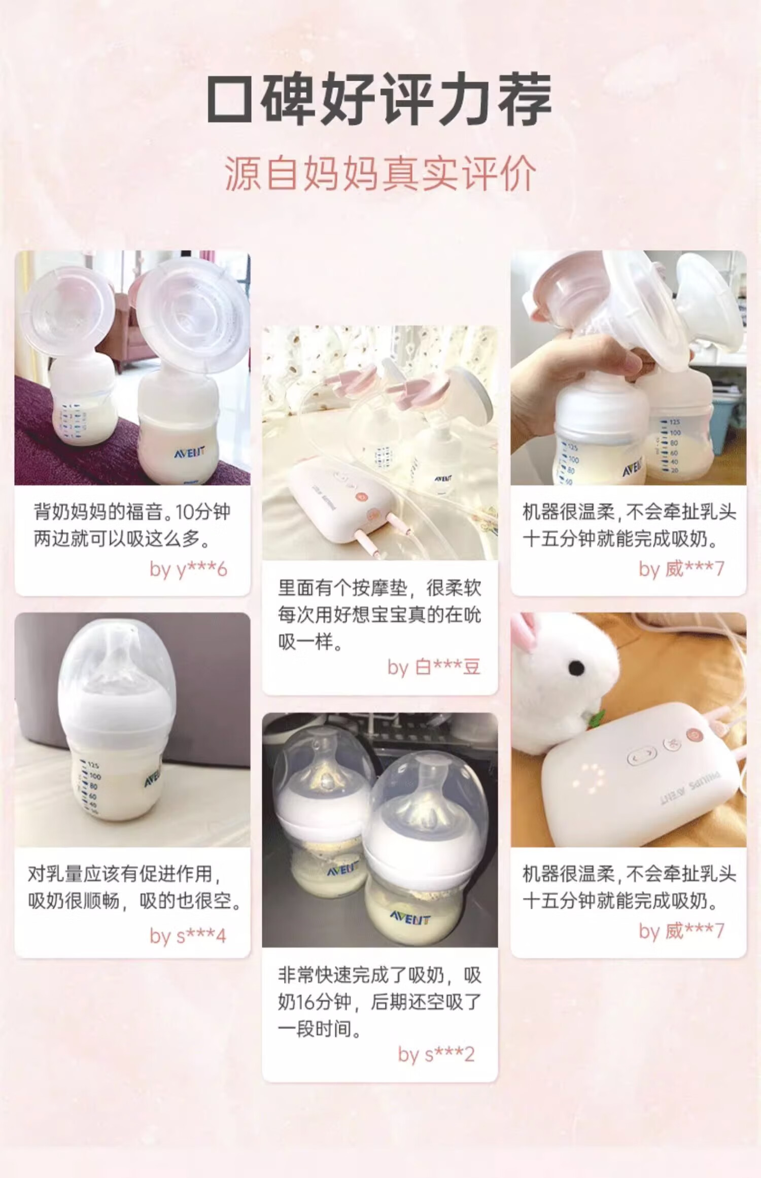 | Product name: Philips AVENT Electric Breath Pump full-automatic shift adjustment massage Breast pump SCF395/91 single-sided delight box | Product name: Philips AVENT Electric Breath Pump full-automatic shift adjustment massage Breast pump SCF395/91 single-sided delight box |