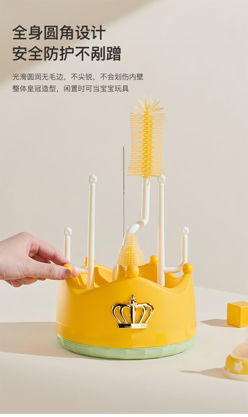 AnbeBaby Bottom Brush Cleaning Brush for Newborn Babies 3-in-1 Drain Holder, Nipple Brush, Straw Brush, Cleaning Cup Brush Set, Rotating Baby Bottom Brush Set [Nano Silver Apple Green] [Image Price Brand Quotation]-