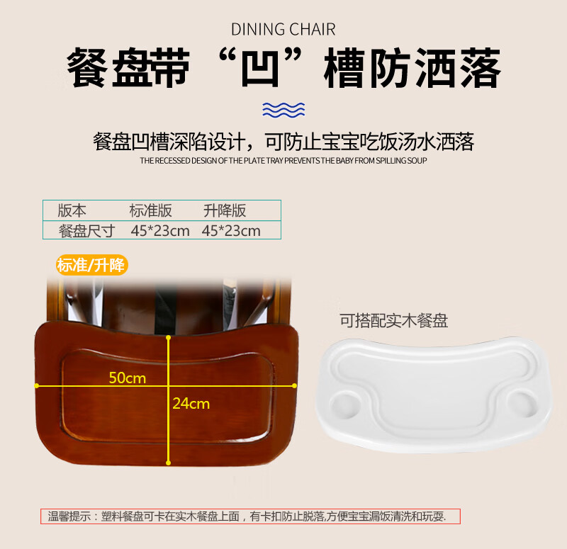 Jemawett Baby High Chair Children High Chair with Tray Solid Wood Portable Baby Adjustable Baby High Chair Large Lift Dark Coffee [with cotton pad+dinner plate+mute wheel] [height adjustable]
